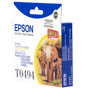 爱普生(EPSON)T0494黄色打印机墨盒适用于R210R230R310RX510650可打印量630页