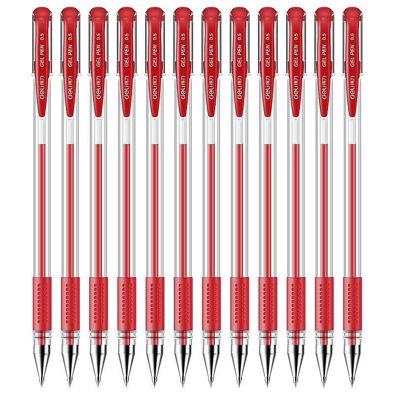得力S08臻顺滑办公中性笔0.5mm弹簧头(单位:支)红色