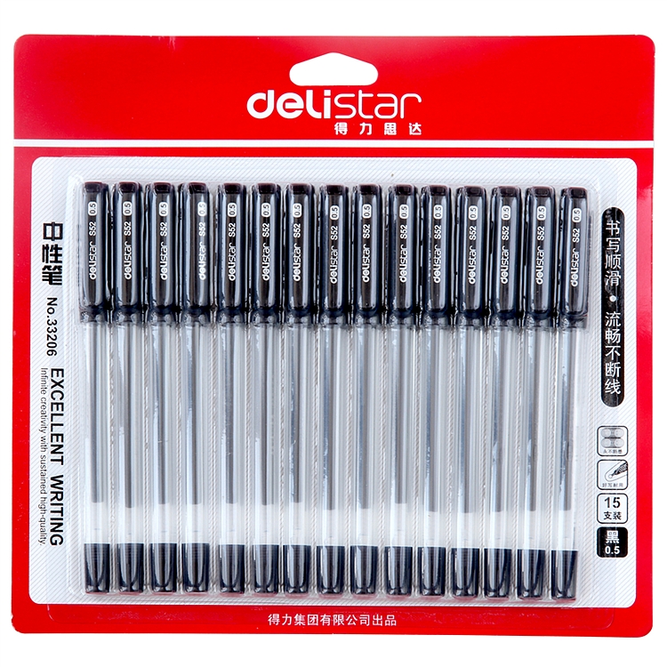 得力33206签字笔中性笔水笔0.5mm15支/卡(单位:卡)黑色