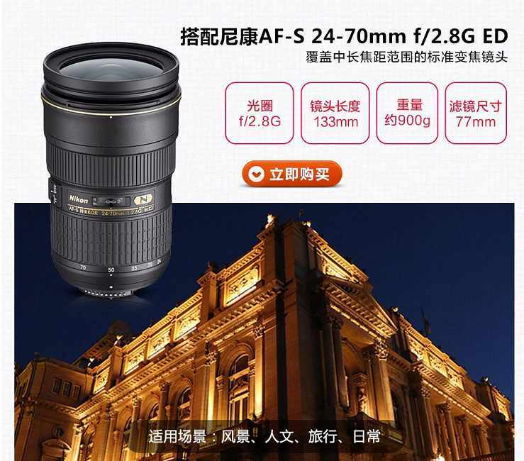 尼康(Nikon)D750全画幅单反相机尼康24-70/2.8G镜头套装