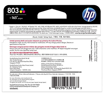 惠普HP803彩色墨盒F6V20AA适用于:HPDeskJet1111/1112/2131/2132