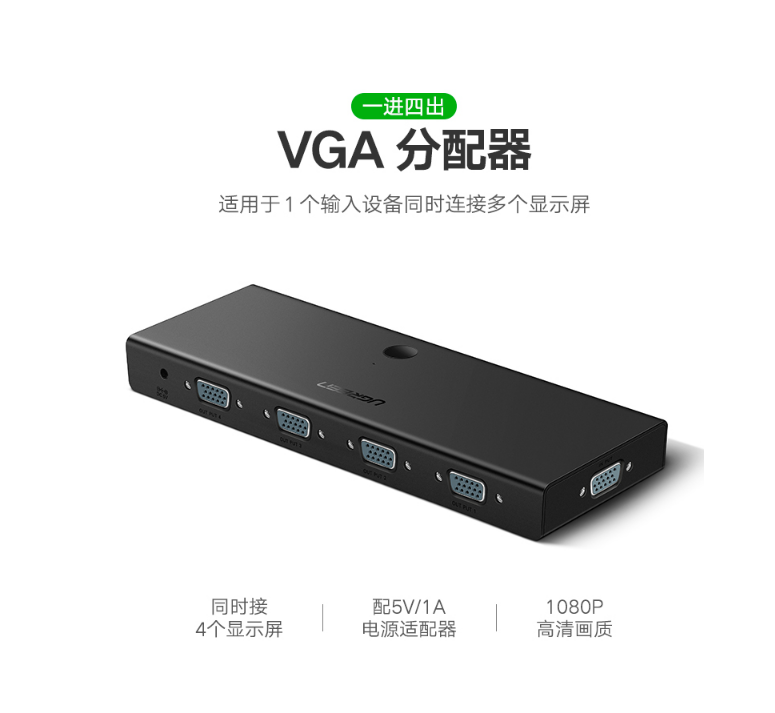 绿联(UGREEN)VGA视频一分四分配器
