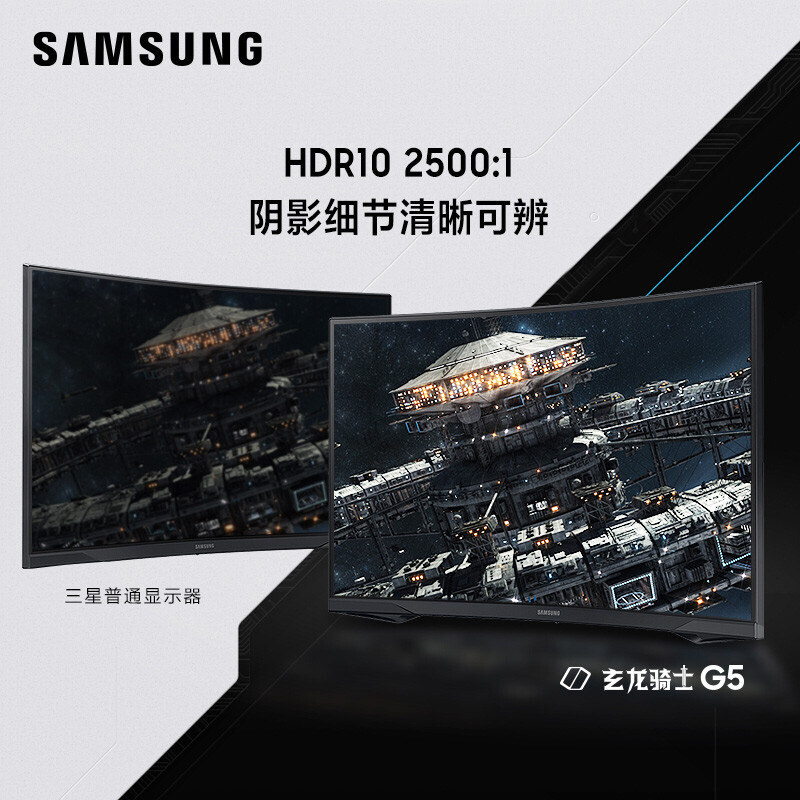 三星(SAMSUNG)27英寸 G54T 2K 1000R曲面 窄边框 144Hz 1ms 玄龙骑士电竞显示器(C27G54TQWC)三年质保