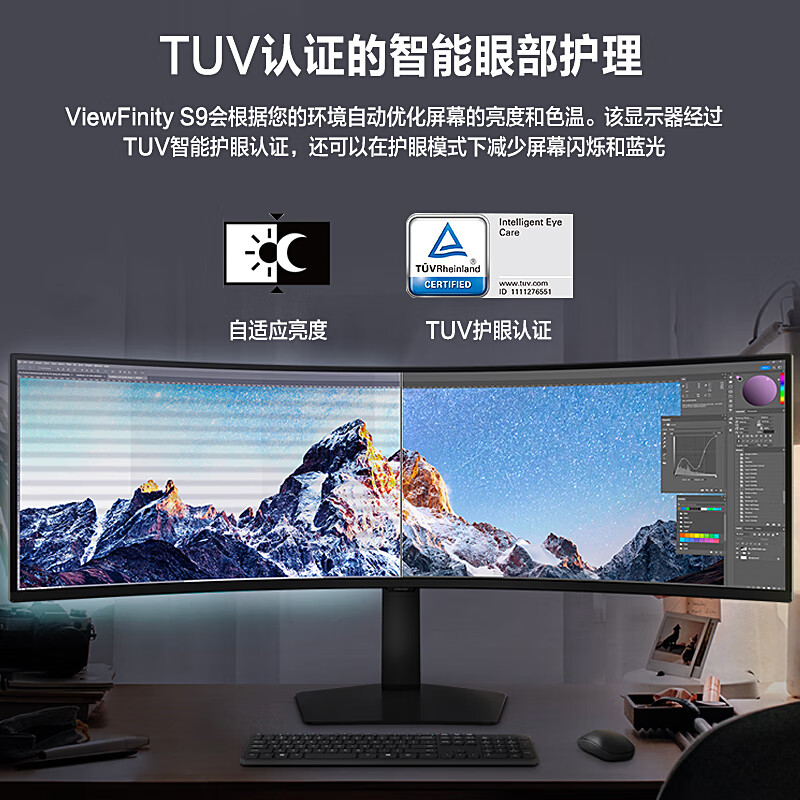 三星(SAMSUNG)S49C950UAC 49英寸带鱼屏5K 节能 120Hz高刷游戏 Type-C KVM分屏 办公电竞曲面 HDR400 内置音响